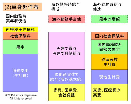 | ■ | 家族帯同時の処遇をまず決定し、これをもとに単身赴任時の処遇を考える。 |